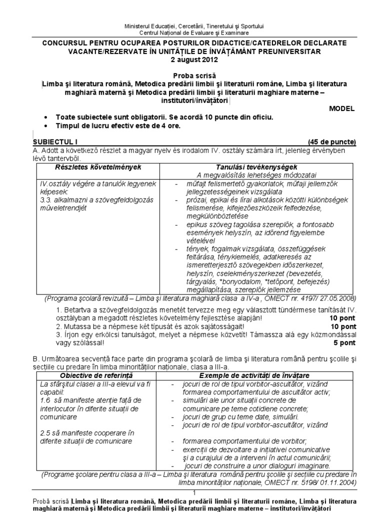 Titularizare Model Subiecte Invatatori Maghiara from imgv2-2-f.scribdassets.com Titularizare 2021 modele de subiecte făcute după noua programă au fost publicate în ajunul crăciunului. Incepeti pregatirea pentru definitivat sau titularizare 2021! Este de mare folos, având în vedere faptul ca orice material este binevenit. Centrul național de politici și evaluare în educație a publicat joi, 24 decembrie, modelele de subiecte pentru titularizare 2021. Programele pentru 133 de discipline de examen au fost modificate prin ordin de ministru şi au fost publicate de ministerul educaţiei. Metodologie, calendar, subiecte, rezolvari, modele de subiecte, variante rezolvate pentru diferite materii (matematica, limba romana, informatica, fizica, biologie, geografie, istorie, chimie) 100 variante de subiecte anatomie si. Câtă matematică trebuie să știe un candidat la titularizare 2021, potrivit noii programe: